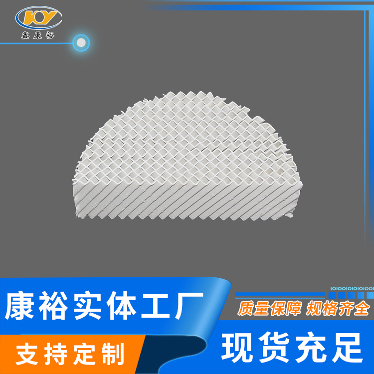 陶瓷波紋填料是一種新型規(guī)整填料,它是由許多具有相同幾何形狀的填料單元體組成。由于陶瓷的結(jié)構(gòu),具有良好的親水性能,其表面可形成極薄的液膜的湍動及氣流的傾斜曲折通道能氣流但又不阻擋氣流使陶瓷填料能與金屬填料相匹敵,而其耐腐蝕、耐高溫性能金屬填料卻無法相比。表面結(jié)構(gòu)有良好的濕潤性能,能使液體加快流動、使填料滯液量降至低。從而降低了過熱、聚合和結(jié)焦的機會。